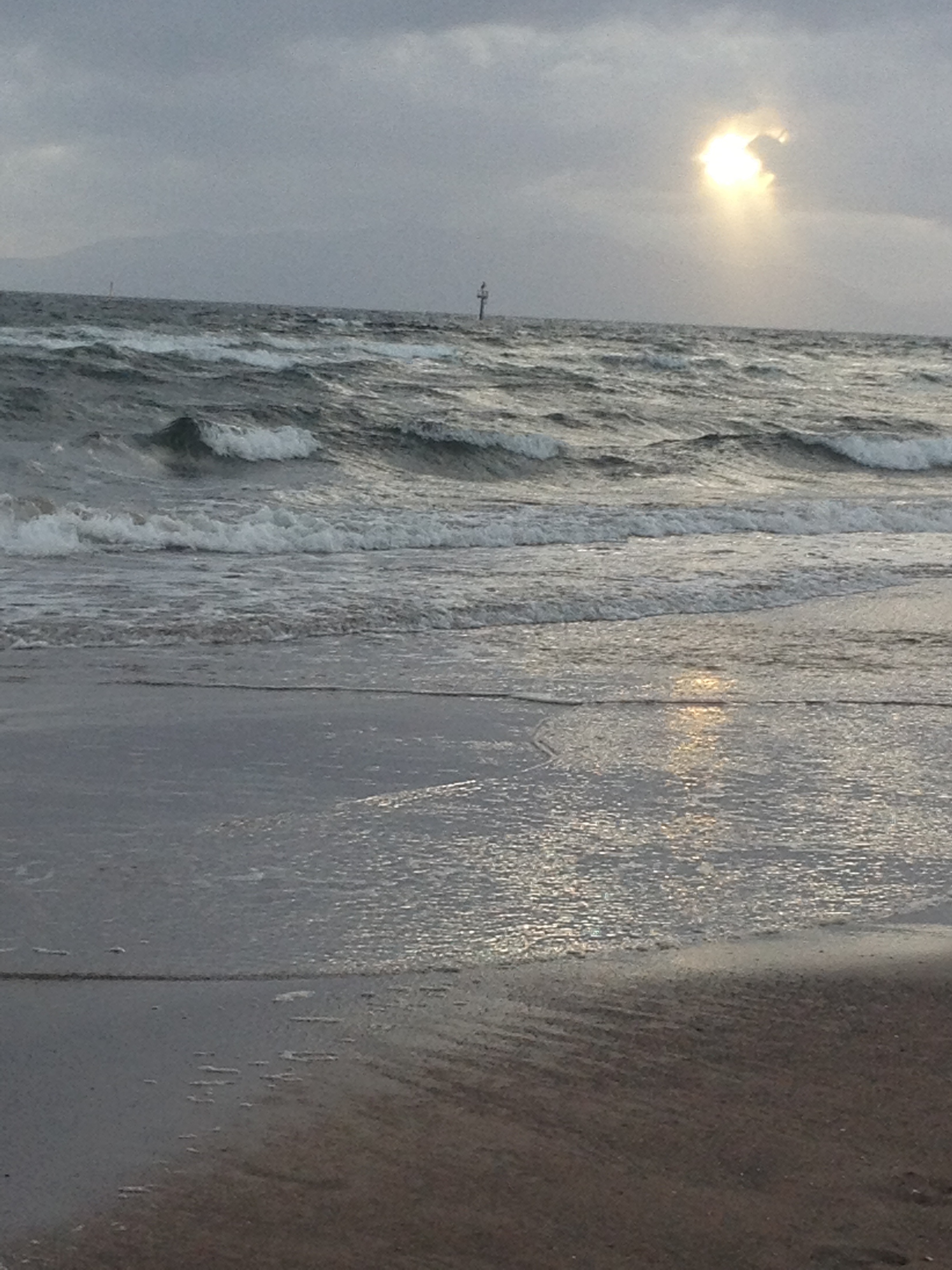 As we came in to Largs, we turned left and went over the humpback bridge over the railway line and into the Largs Marina. Here we turned right and followed the park path alongside the rocky outcrops then the beach before rejoining the main road and turning right up past Nardini’s.